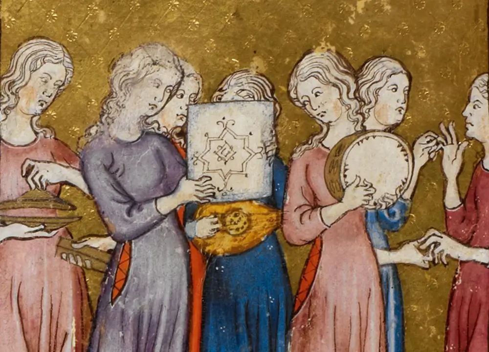 מרים (שמות טו:כ), הגדת הזהב, ברצלונה, 1320 לערך. הספרייה הבריטית, לונדון