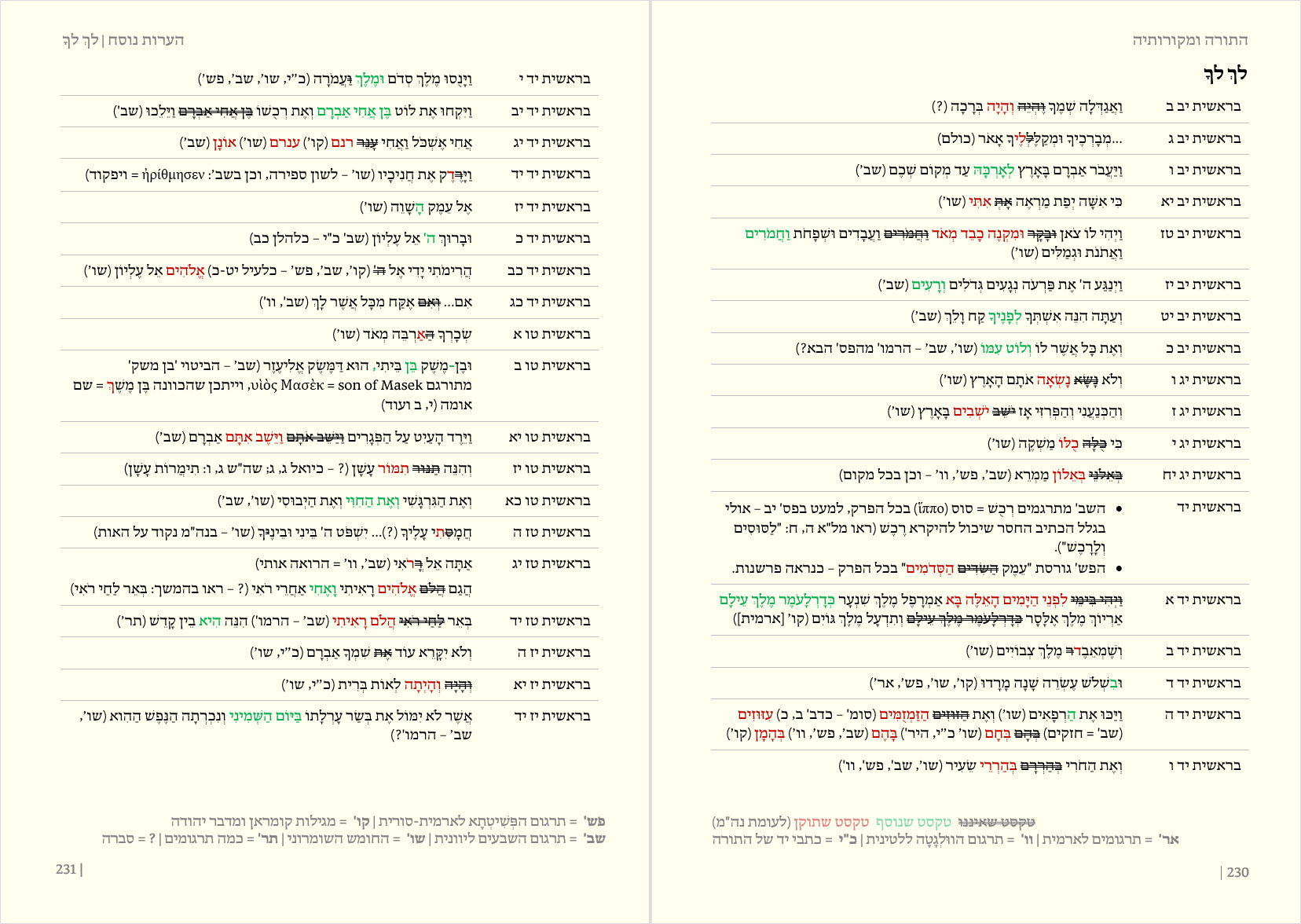 עמוד לדוגמה של הערות טקסטואליות מפרשת לך־לך: