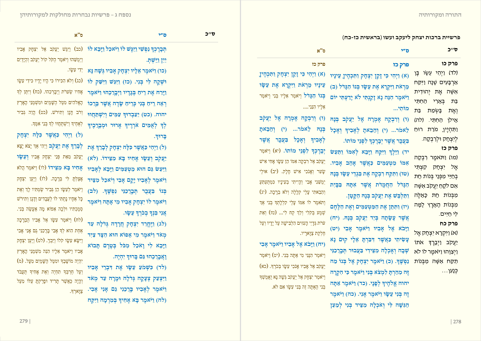 קטע לדוגמה עם הפרדת מקורות – בראשית כז–כח: